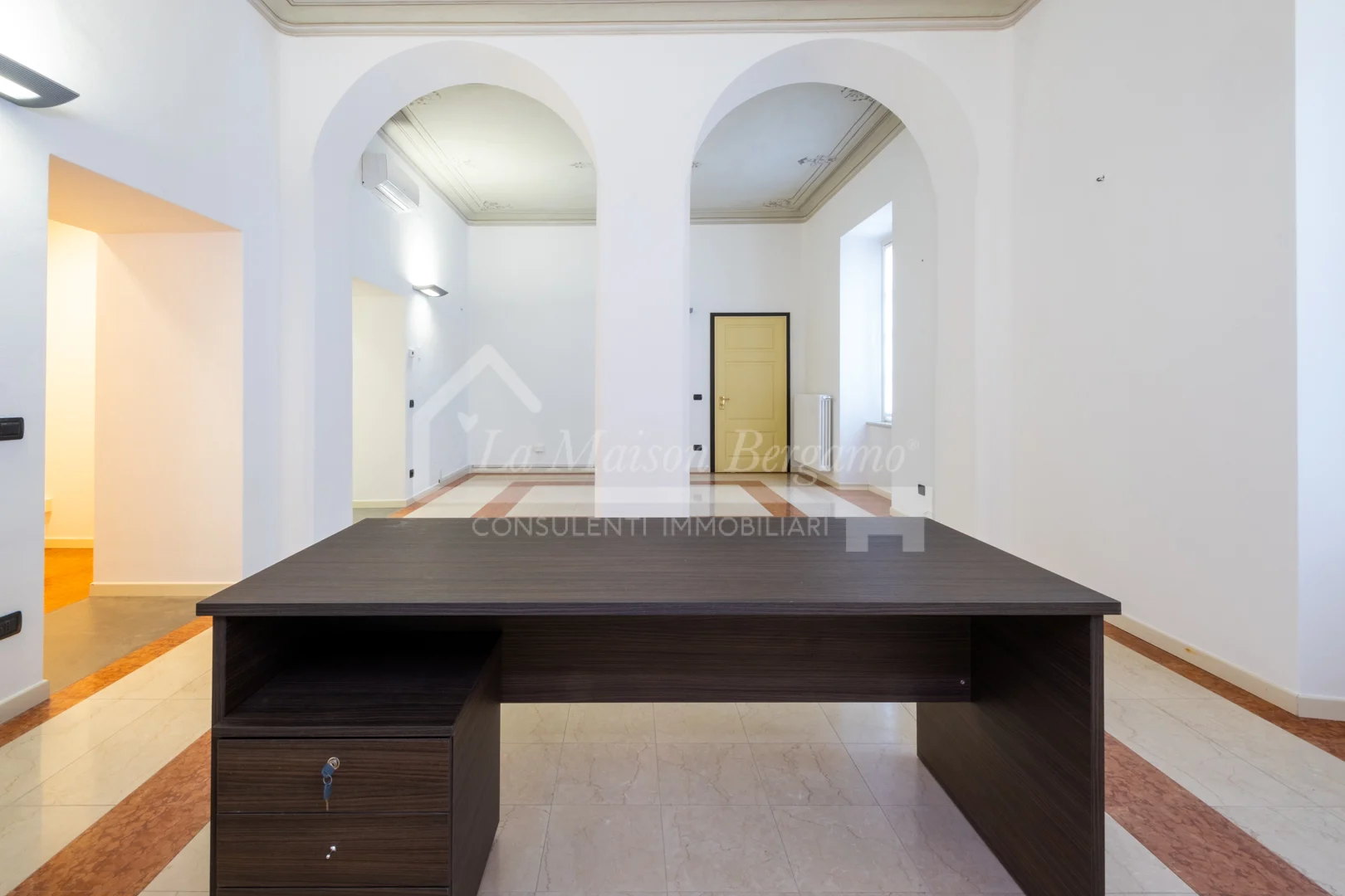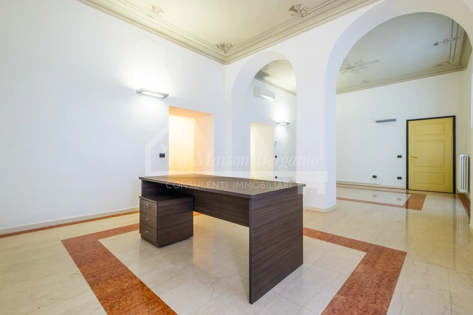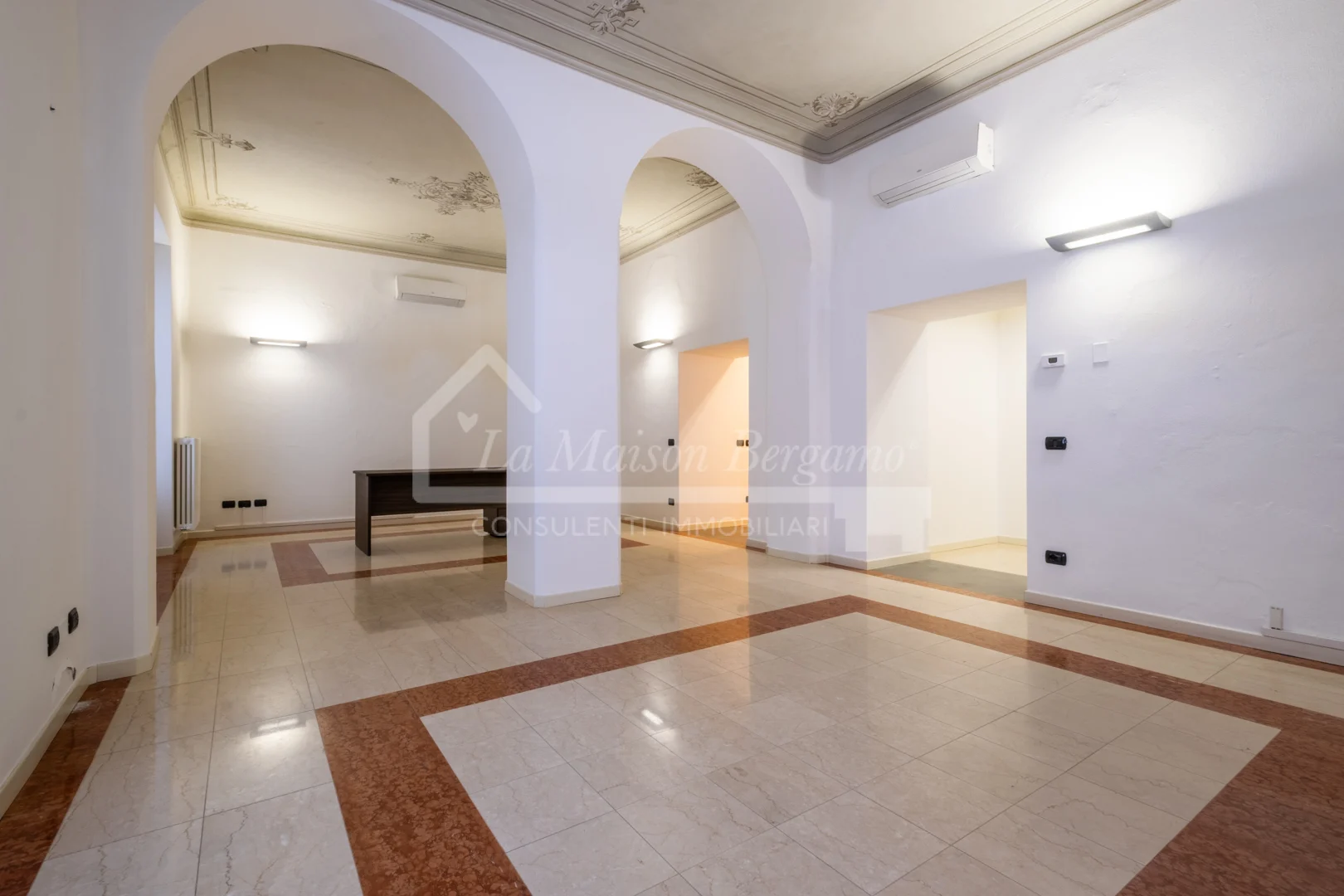 Al piano terra, questo immobile unico nel suo genere offre un’esperienza abitativa di grande respiro, dove l’assenza di spazi esterni è ampiamente compensata dalla sontuosità degli interni.