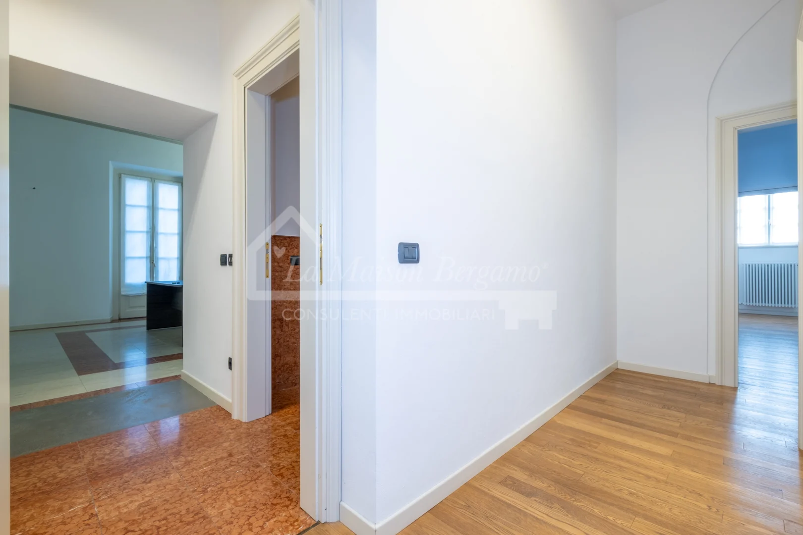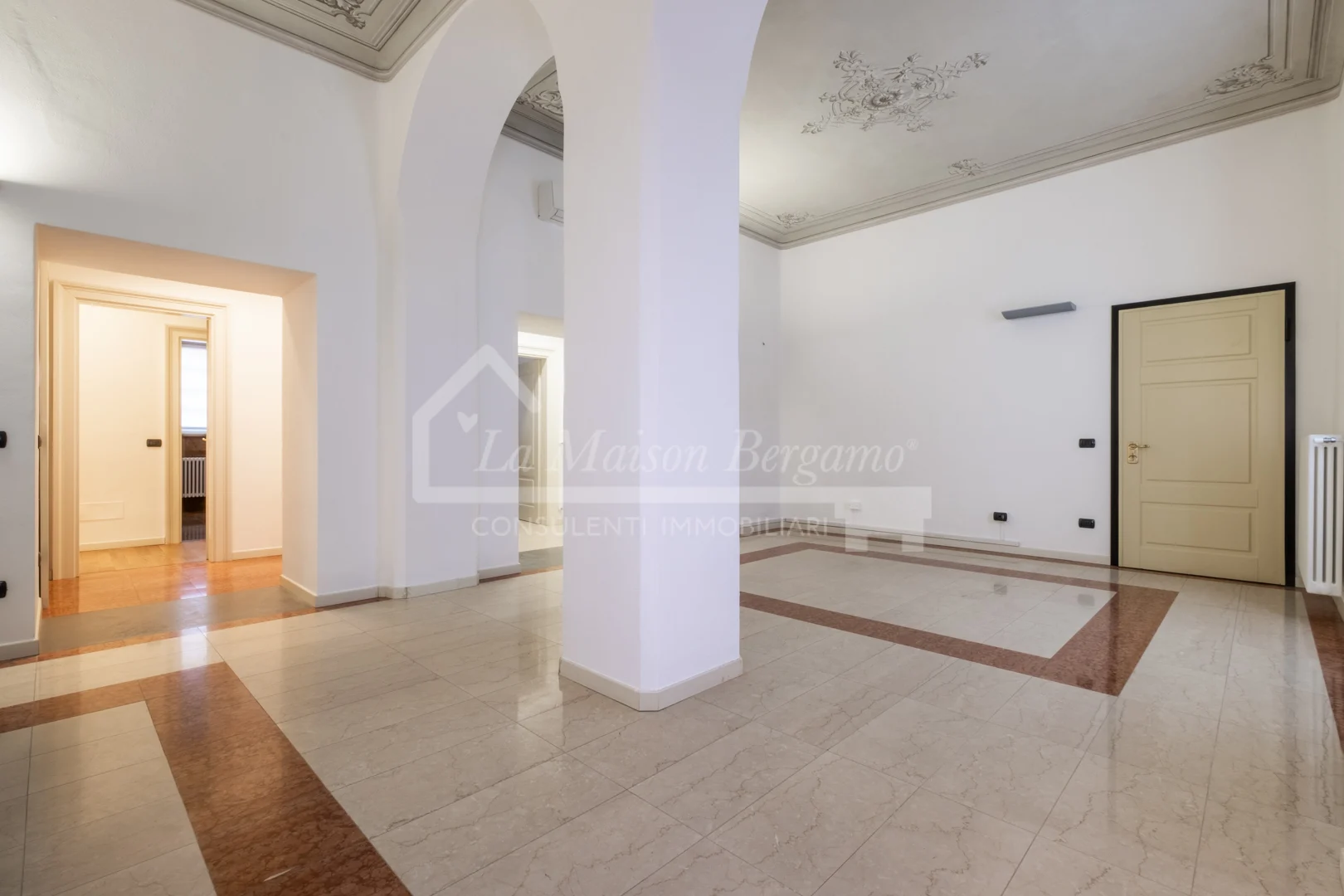 L’ingresso introduce ad una zona giorno doppia e di rappresentanza, un ambiente di rara ampiezza e luminosità, ideale per accogliere ospiti e vivere momenti di convivialità in un contesto di grande eleganza.