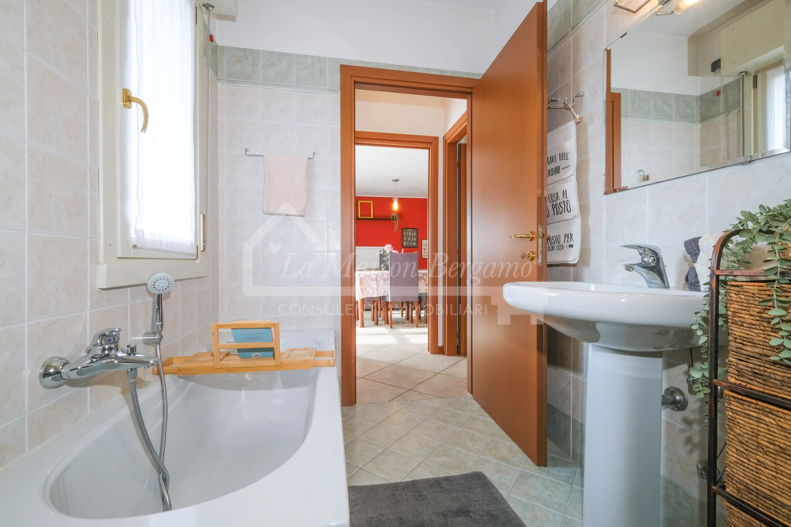 Completa la proprietà un bagno finestrato, equipaggiato sia con un comodo box doccia che con una vasca da bagno, per soddisfare ogni esigenza.